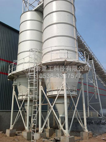 它包括由若干节由下而上对接在一起的金属筒体和环绕上、下两相邻筒体结合端外壁设置的并与上、下两相邻筒体相固接的连接钢圈组成的仓体,以及附着在每节筒体内壁上的由高分子聚合板卷制而成的筒体,和位于仓体下方的自动卸料器,设置在仓体顶部的进料口,组成仓体的各节金属筒体的内径由下至上呈递减的形式排列,附着在每节金属筒体内壁上的高分子聚合板筒体 的内径由下至上相应呈递减的形式排列。